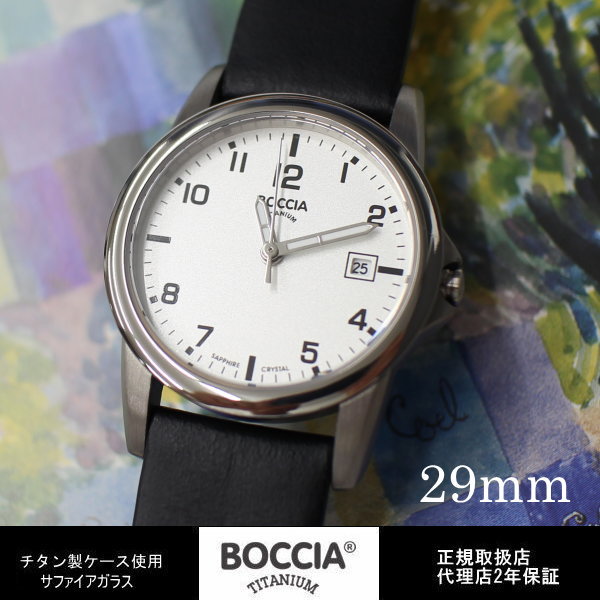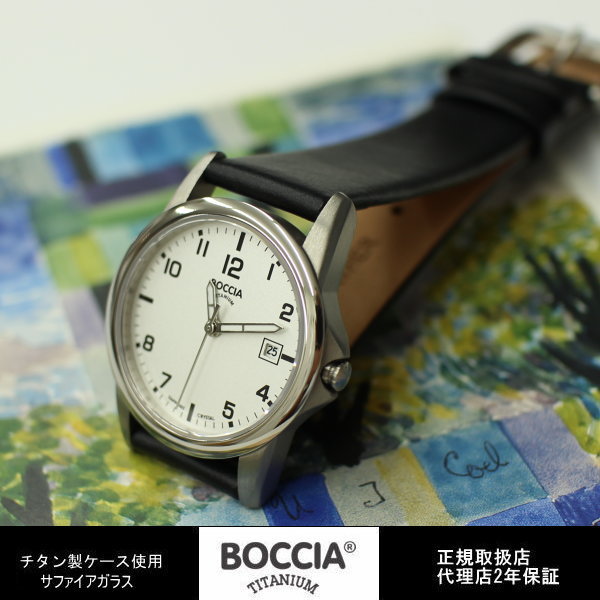 BOCCIA TITANIUM ボッチア チタニュウム クォーツ レディース サファイアガラス 傷つき難いサファイアガラス 薄型 6ミリケース 5気圧対応日常生活用防水 ■ 製品番号:3298-01 ■ サイズ:直径 29mm 厚さ 6mm 20g ■ 駆 動:スイス製クォーツ ■ 精 度:月差±15秒程度 ■ ケース:チタン(無垢素材) ■ ガラス:サファイガラス ■ 文字盤:ホワイト(アラビア数字・プリント) ■ 防 水:5気圧生活防水 ■ ベルト:レザーベルト(黒) バックル(チタン製) ■ 保 証:代理店2年保証 ■ その他:専用ボックス ■ GIFTラッピング 無料BOCCIA TITANIUM ボッチア チタニュウム レディースウォッチ ドイツ時計 時計作りにドイツスタイルの合理主義を生かしたボッチア、ドイツ名門時計メーカーTUTIMA社のサブブランド。
