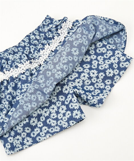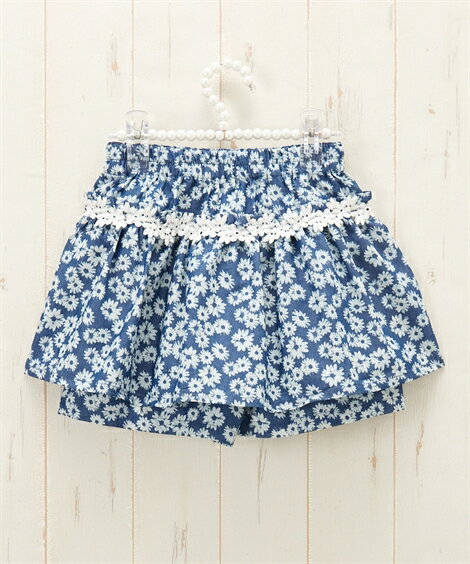 レース使いデニムフリル付キュロット(女の子 子供服) ニッセン nissen ブルー ネイビー(花柄) カラー ブルー/ネイビー(花柄) サイズ 100/110/120/130 備考 単位:cm ※サイズの誤差は多少発生します。