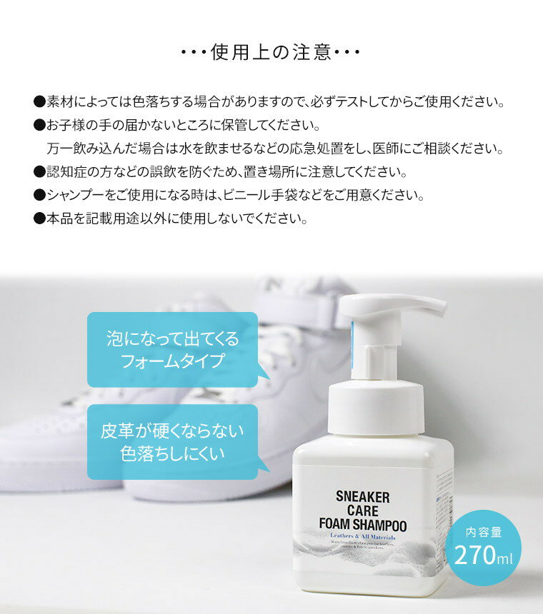 [内容量]:270ml [成分]:界面活性剤(2.4%、ココイルグルタミン酸TEA) [用途]:銀付き革、起毛革、キャンバス、布地、ビニール、合皮 [使用量の目安]:1足あたり10プッシュ(7〜8g) ※当店では在庫一括管理システムにより複数店舗の在庫を共有しております。